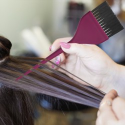 Wykonane z trwałego tworzywa odpornego na chemikalia, z miękkim, elastycznym włosiem, które dokładnie rozprowadza produkt i nie rysuje skóry głowy. Długa, zwężana rączka ułatwia wydzielanie pasm i precyzyjną pracę.
